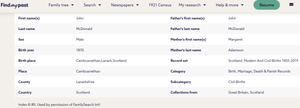 If I were advising ScotlandsPeople I’d suggest that they license some or all of their historic indexes to third-parties on the basis that the index entries link back to ScotlandsPeople – this a similar arrangement to the one between Ancestry and Essex Record Office (for parish registers), and between FamilySearch and Findmypast (for England & Wales censuses). And I’d make a similar suggestion to the GRO – they don’t benefit from people searching at their site, they only receive income when researchers place orders.