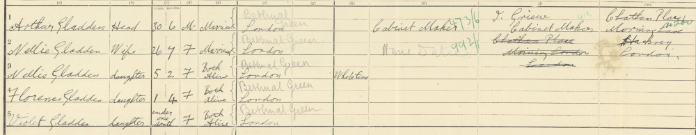 Having watched the documentary I couldn’t resist looking up the Gladden family in the 1921 Census and 1939 Register: